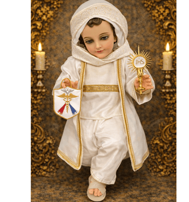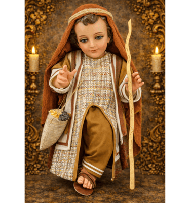 Somos un taller artesanal dedicado a vestir Niños Jesús de porcelana. Diseñamos y confeccionamos trajes personalizados con devoción, calidad y detalle.