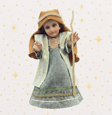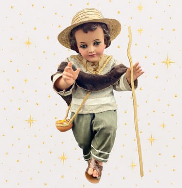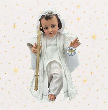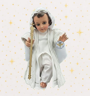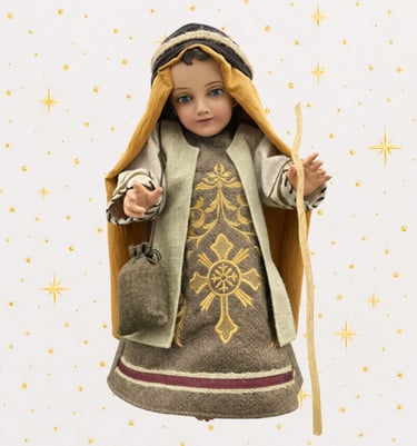 Somos un taller artesanal dedicado a vestir Niños Jesús de porcelana. Diseñamos y confeccionamos trajes personalizados con devoción, calidad y detalle.